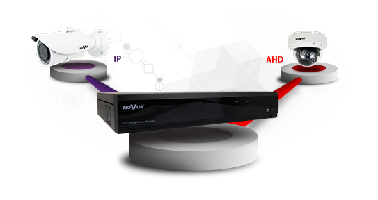 The Novus AHD DVRs, thanks to the hybrid mode, are able to display, record and receive image analysis from including IP cameras. The combination of analog cameras with IP cameras in one recorder is particularly important in the case of modernization of the existing video monitoring system, as well as its future expansion.