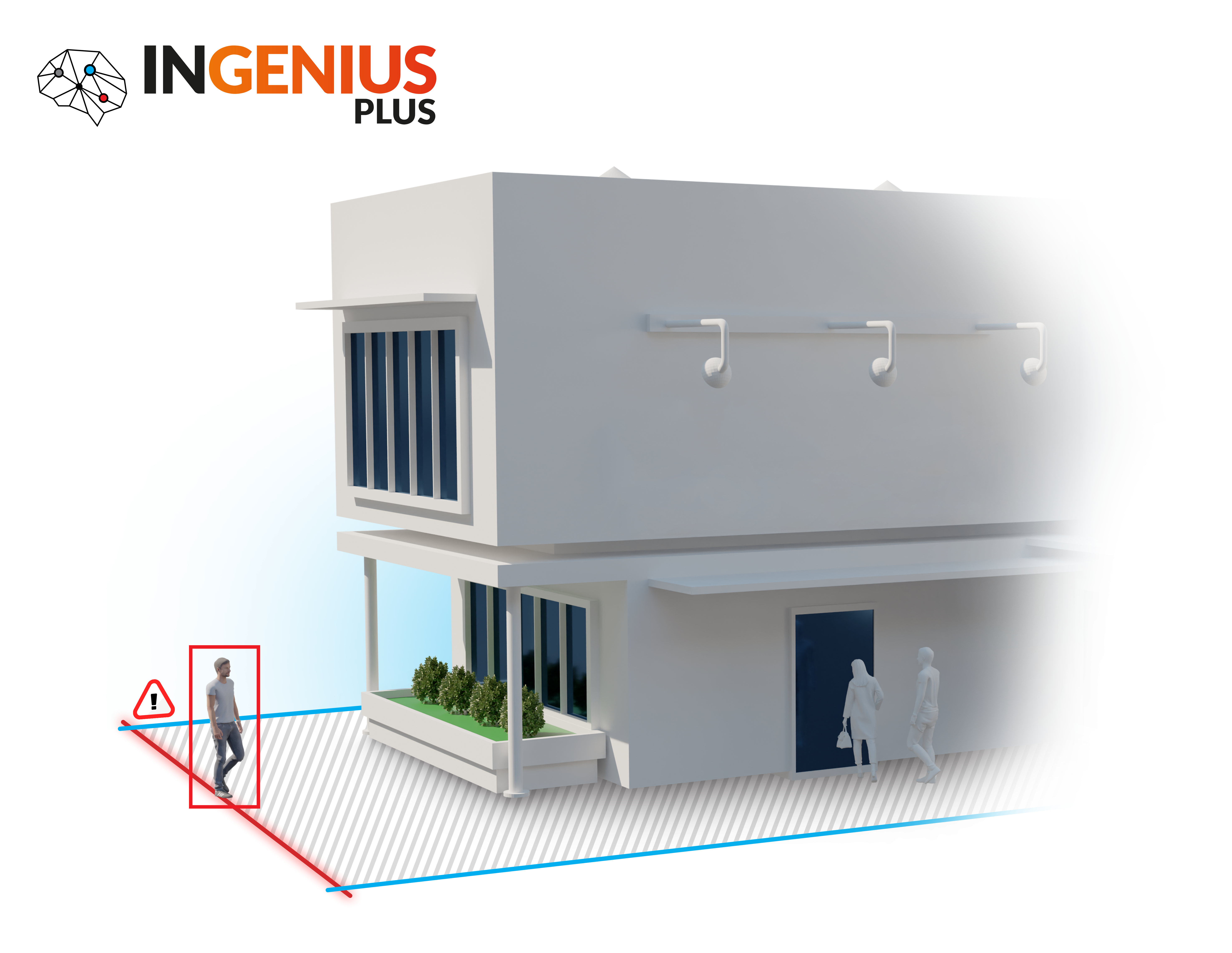 Image analysis function based on Deep Learning, allows to create a virtual detection line. If the line is exceeded by defined objects with recognized shapes (a human or a car), an alarm is triggered.