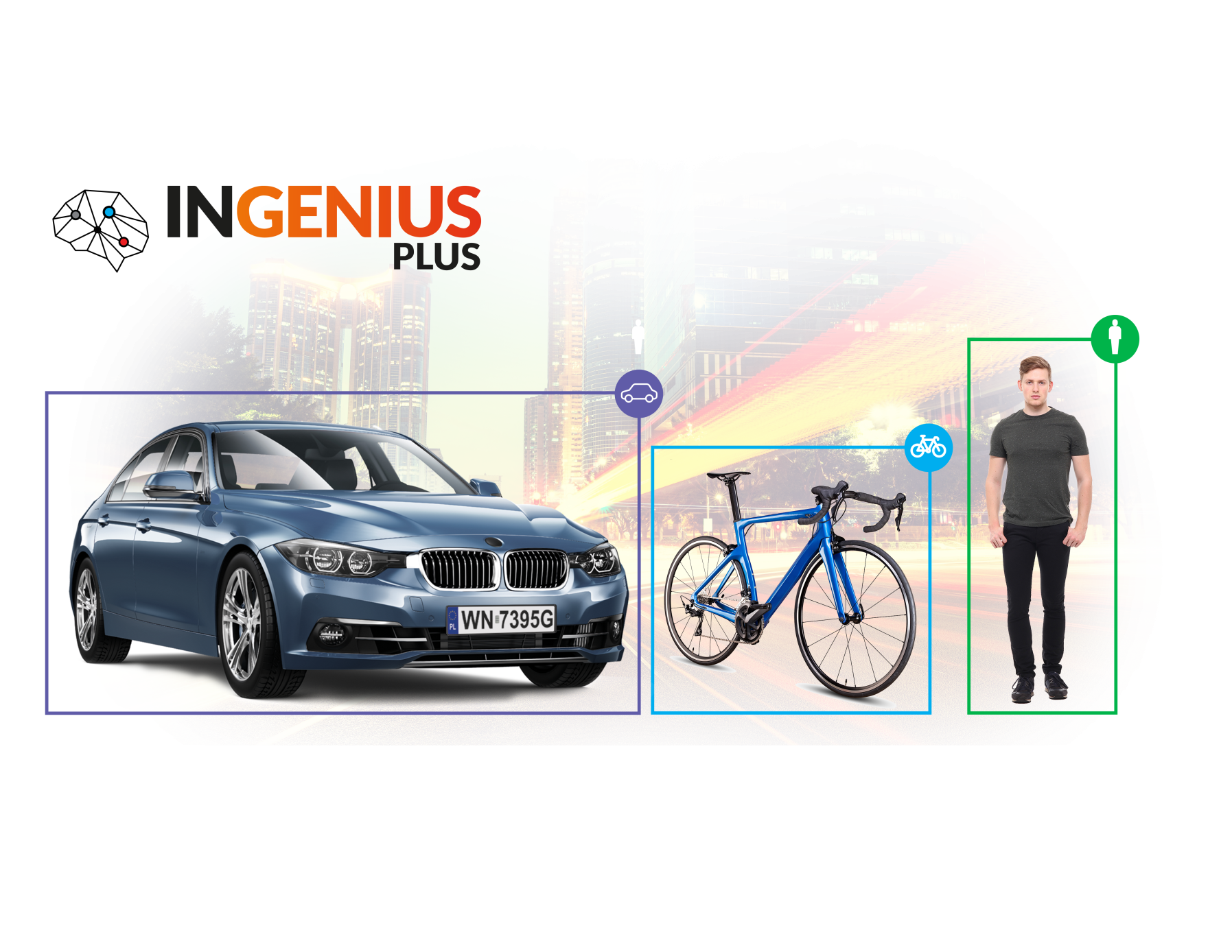 INGENIUS PLUS - a new generation of intelligent image analysis based on Deep Learning. The algorithm used allows the camera to recognize the shape of a human, a car and bike/motorcycle, even as small as 1% of the stage. The efficiency of the analysis methods used allows simultaneous classify and monitoring of up to 32 objects of different types.