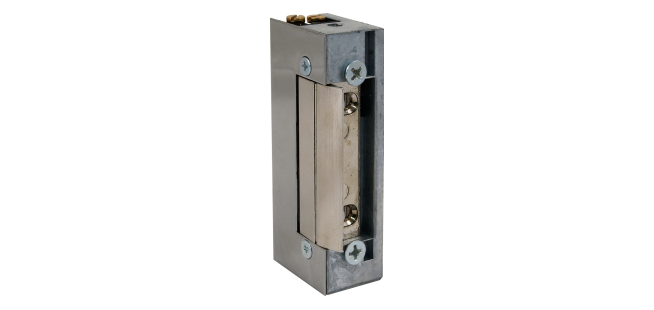 Electric strike (NC) with memory to maintain the unlocking state until the door is opened after the opening pulse. For remote wired opening of doors, gates, flaps, furniture. It can be used in steel, aluminum, wooden and PVC profiles, both internal and external, with the possibility of assembly for left and right doors as well as in vertical and horizontal position. Adjusting the hook in the range of 4mm facilitates assembly and ensures precise adjustment of the electric strike to the handle lock.