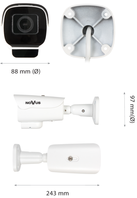 with bracket: 88 (W) x 97 (H) x 243 (L)