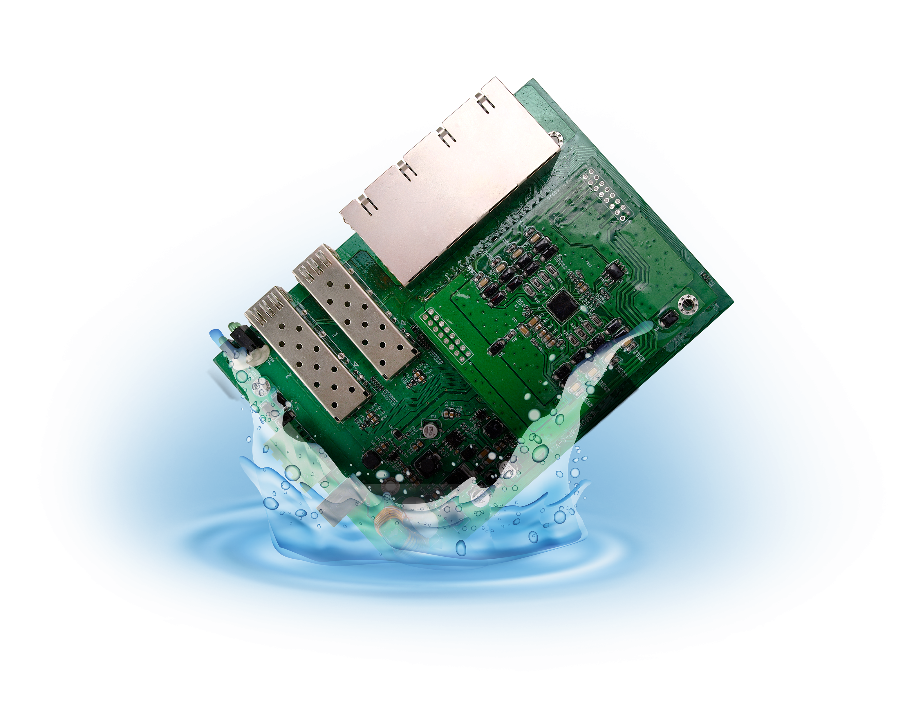 Protective barrier that protects electronic components from harsh environmental conditions such as moisture, chemicals, dust and dirt.