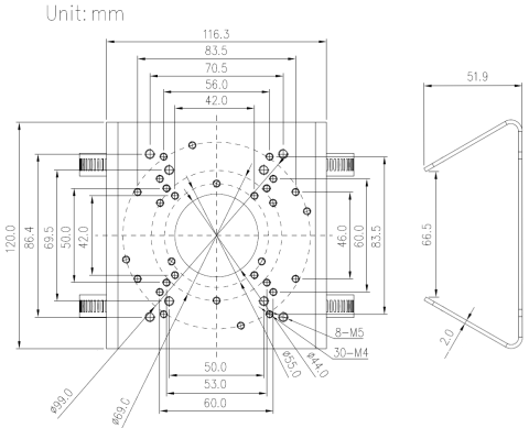 | Dimensions (mm) | 120 (W) x 120 (H) x 52 (D) φ range = 130 ~ 152 |