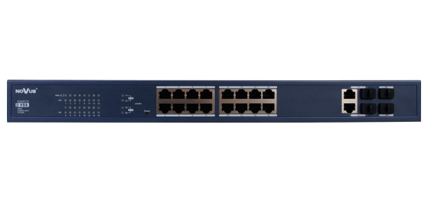 | Ports | PoE+ Ports: 16 x 10/100Mbps (the number of ports simultaneously operating with PoE + mode is limited by PoE budget), UPLINK SFP port 1Gb/s x2 , Uplink Combo x 2 :SFP(1Gb/s) + RJ45(1Gb/s) |