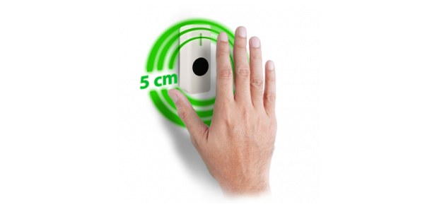 KDH-EXIT1093 is a touchless button - controlled electronically mounted on the surface. The button requires 12V power supply