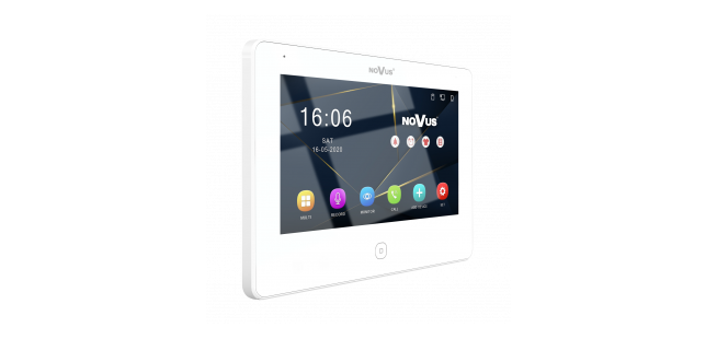 NVE-MV107WIFI villa user monitor is an elegant and aesthetically made device designed for installation in a residential or office. A large 7 ”color screen and an intuitive menu allows quick and convenient use of its functions. In addition to the basic functions (camera image display, door opening), the on-screen menu also allows you to view and delete voice messages, photos and videos as well as play music. Internal memory of the device allows you to save up to 100 photos. The built-in loudspeaker and microphone facilitate operation and communication with the guest. Communication with another user is also possible thanks to the intercom function. The optionally connection of eight cameras can create a simple VSS system enriched with motion detections.