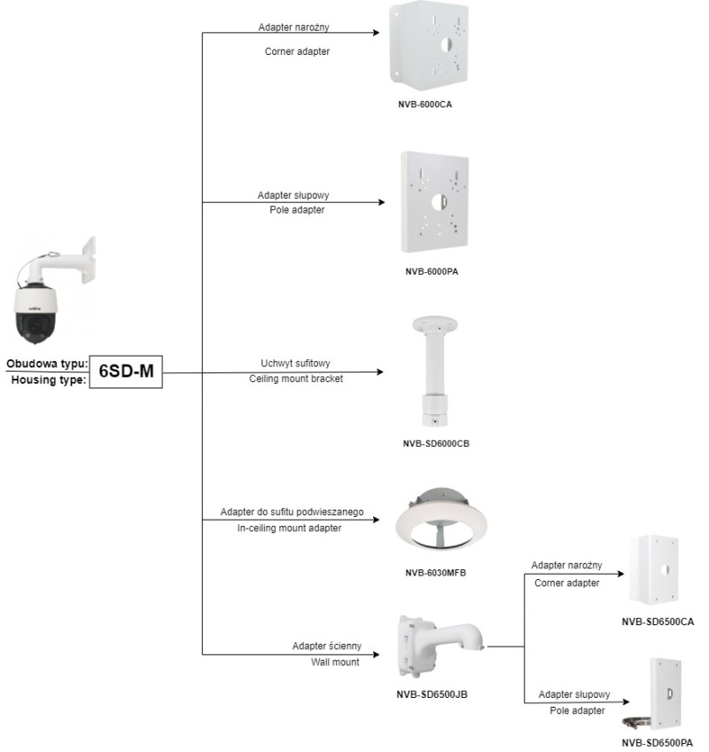 | Enclosure | aluminium, white, IK10 impact rating, In set: outdoor housing (integrated with the camera), wall mount bracket Enclosure type: 6SD-M |