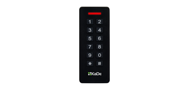 Additionally KDH-CK130M-BLACK reader has built-in keypad. It has switched output format what allows usage in various access control systems (4 bit e.g. KaDe, 8 bit e.g. Kantech). Keypad allows other authorization methods than RFID identifier reading – PIN codes or combination of RFID identifier reading and PIN code usage.