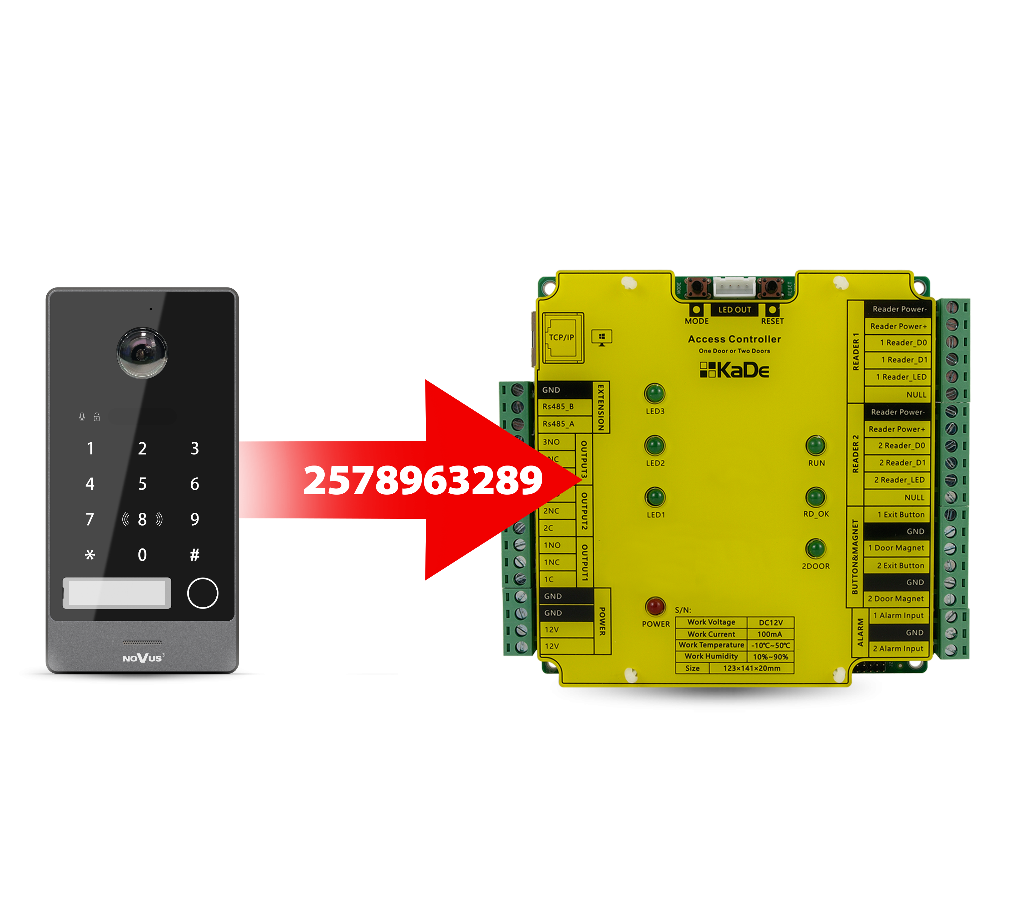 The NVE-2W-EPV120KP panel allows up to 8 digital codes to be sent to the access control controller via the Wiegand interface.
