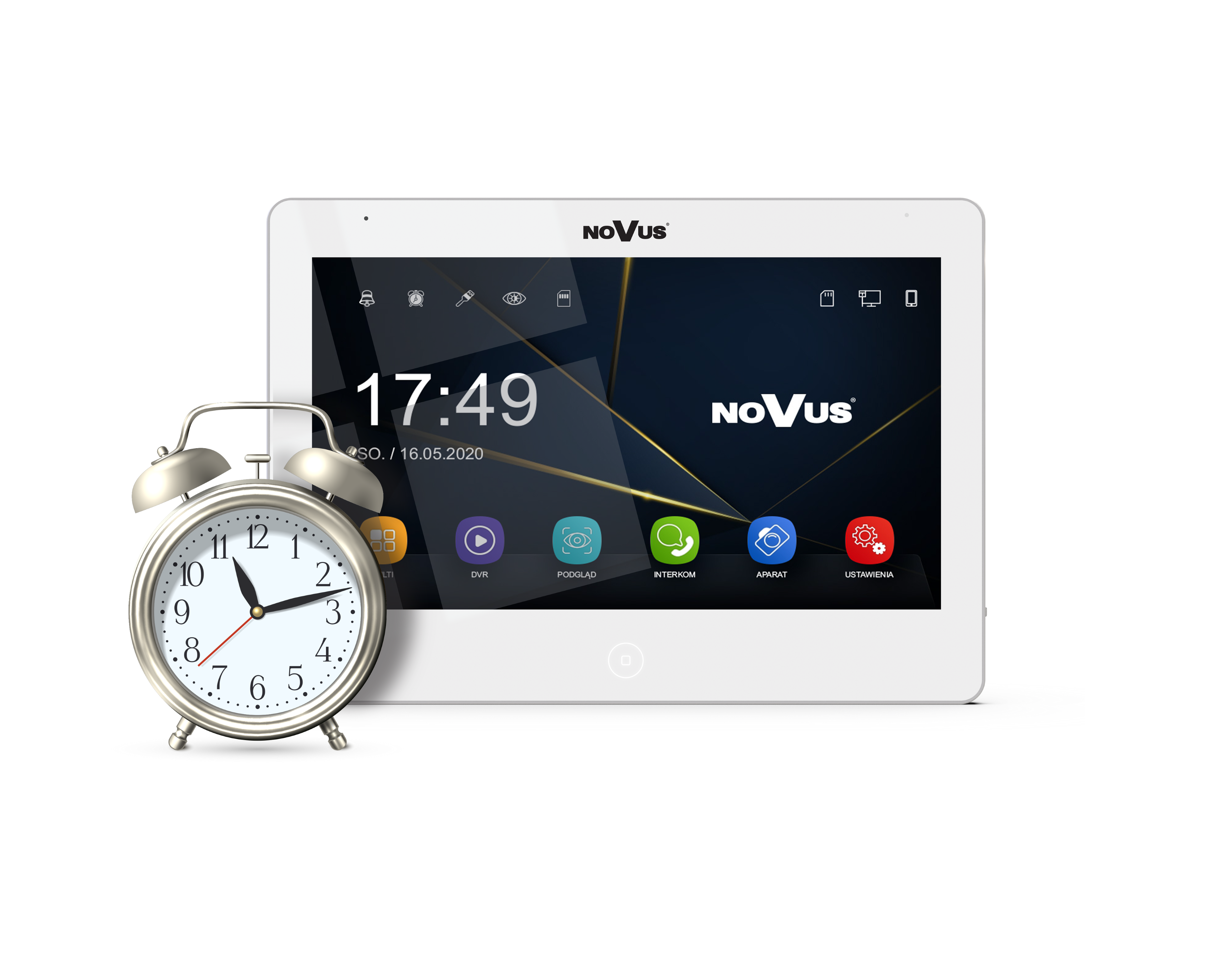 | Additional functions | SD card slot, volume control, monitoring of the view from cameras, intercom calls, voice mail, photos and video recording, mobile application via WIFI, weather widget |