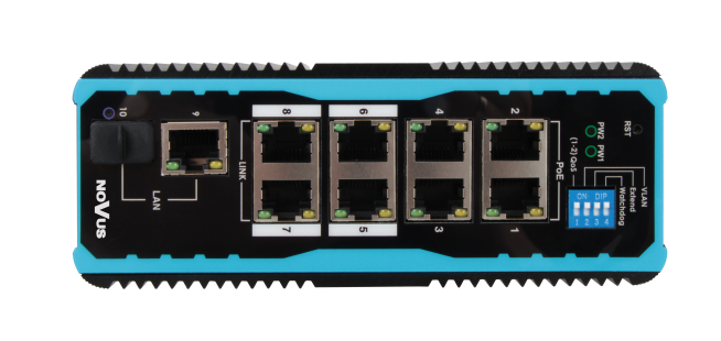 Possibility to enable QoS mode - in case of switch overload, the first ports get priority (marked with the QoS icon) in order to maintain correct transmission.