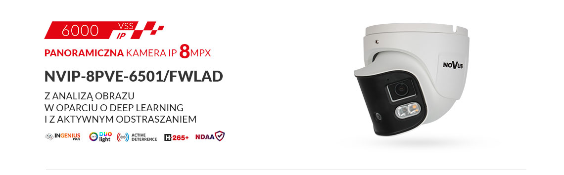 Kamera wykrywa obiekty i reaguje, aby odstraszyć intruzów poprzez świecenie światłem, wydawanie dźwięków ostrzegawczych lub komunikaty głosowe, co zniechęca do dalszych działań bez potrzeby interwencji ochrony.