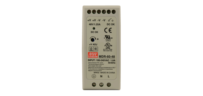 | Wyjście zasilania | 1.25 A / 48 V DC zakres regulacji napięcia wyjściowego: 48 - 56 V DC |