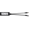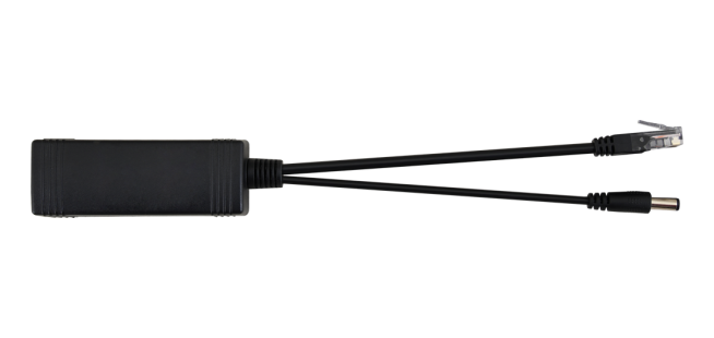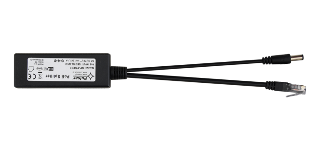 Splitter SP-POE12 przeznaczony jest do zasilania kamer IP, które wymagają napięcia zasilającego 12 V DC. Zbudowany jest w oparciu o wysokosprawną przetwornicę DC/DC obniżającą napięcie z zakresu 44-57V DC do wartości 12 V DC. Maksymalny prąd obciążenia wynosi 1,1 A (Pmax=13 W), zalecany długotrwały prąd obciążenia wynosi 0,7 A . Splitter może być zasilany zarówno z urządzeń zgodnych ze standardem PoE (np. Switch PoE) jak również z pasywnych zasilaczy PoE wstrzykujących napięcie do par 4/5 i 7/8, które nie biorą udziału w transmisji danych. galwaniczną pomiędzy wejściem, a wyjściem. Moduł posiada izolację Na wejście modułu (gniazdo RJ-45) podawane jest napięcie zasilania (POWER) oraz dane (DATA). Na wyjście (wtyk RJ-45) przesyłane są jedynie dane (DATA), natomiast napięcie zasilania 12 V DC do kamery dostępne jest na wtyku DC 5,5/2,1. Splitter pozwala również na zasilanie innych urządzeń wymagających napięcia zasilającego 12 V DC takich jak: Acces Point, router itp...