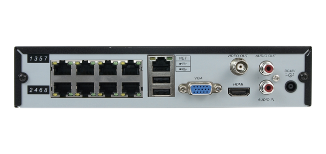 8 x Ethernet PoE (IEEE802.3af, Klasa 3) - złącze RJ-45, 10/100 Mbit/s