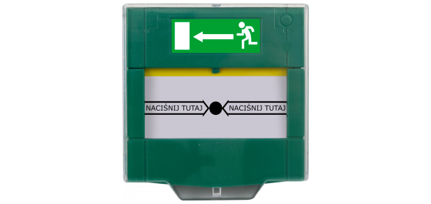 Przycisk wyjścia awaryjnego. Konstrukcyjnie przystosowany jest do montażu nawierzchniowego na różnych profilach. Posiada dwie pary styków C/NO/NC.