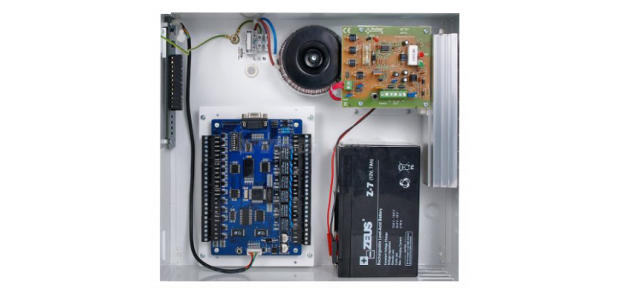 Zasilacz buforowy do kontrolerów KS-1012RS/IP (1-2 drzwi). Zasilanie 12 VDC, 2A. Do zasilania modułu kontrolera, czytników, zamków elektrycznych i ładowania akumulatora.