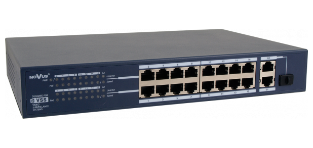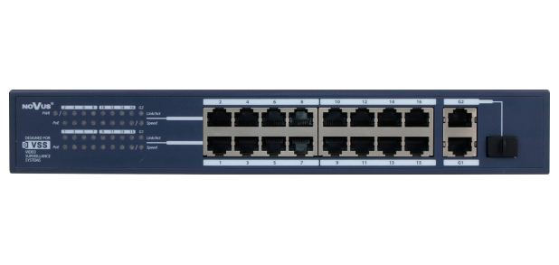 Porty PoE+ - wykorzystywane do zasilania i transmisji danych do kamer IP z wykorzystaniem jednego przewodu. Budżet całkowity mocy dla jednego portu udostępniany przez przełącznik pozwala na podłączenie urządzenia o maksymalnym poborze mocy do 30W (obsługa protokołów 802.3at/af)