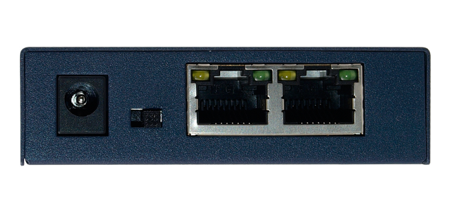 | Porty zewnętrzne | Porty PoE+: 4 x 10/100Mb/s (ilość dostępnych równocześnie portów w trybie PoE+ ograniczona wydajnością zasilacza), Porty UPLINK: 2 x 10/100Mb/s |