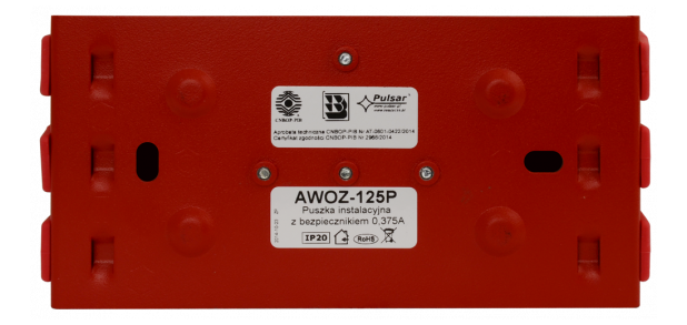 Puszka instalacyjna posiada osobne zaciski do podłączenia wejścia linii sygnałowej, osobne do podłączenia wyjścia linii sygnałowej oraz osobne do podłączenia sygnalizatora lub innego urządzenia poprzez bezpiecznik.