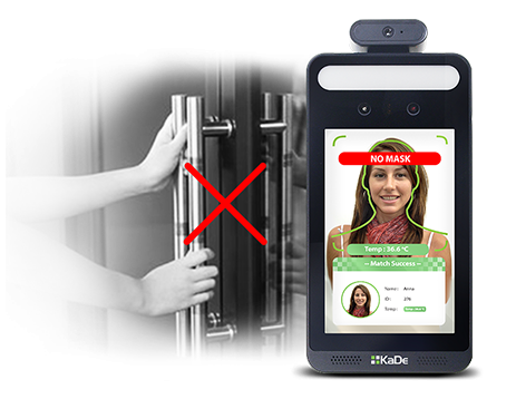 Funkcja otwierania drzwi pozwala ustawić czas opóźnienia otwarcia drzwi oraz czas na jaki drzwi zostaną otwarte. Odblokowanie drzwi może odbywać się za pomocą dowolnie wybranych opcji (tj. identyfikacja twarzy, odpowiednia temperatura ciała, maseczka na twarzy) w zależności od ustawień użytkownik musi spełniać jedną lub wszystkie wybrane opcje. Innym sposobem na identyfikację użytkownika może być wprowadzenie hasła na panelu dotykowym.