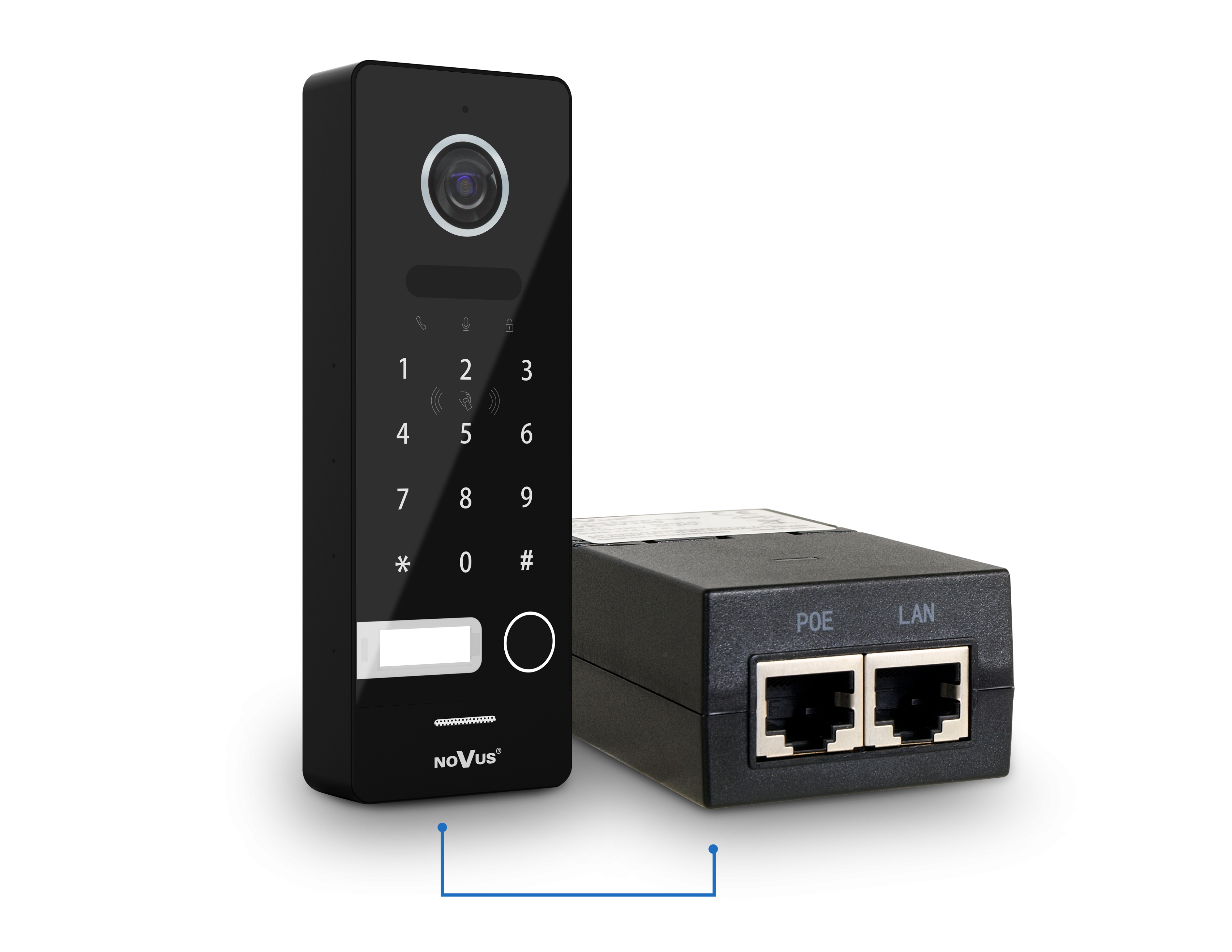 Szybka i sprawna instalacja z minimalną ilością przewodów. Technologia Power over Ethernet (PoE) umożliwia zasilanie urządzeń oraz ich komunikacje przy pomocy przewodu teleinformatycznego UTP. Panel NVE-EPV101KPWIFI zasilany jest napięciem 24V. Dedykowanym adapterem zasilania PoE jest NVE-SV100.