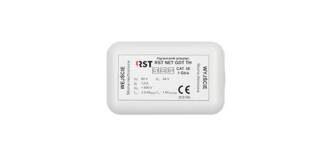 Ogranicznik przepięć do ochrony zgrubnej sieci informatycznych i systemów telewizji dozorowej IP.
