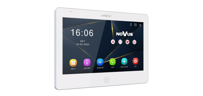| Funkcje dodatkowe | slot kart SD, regulacja głośności, podgląd obrazu z kamer paneli i kamer IP, połączenia interkom, poczta głosowa, zapisywanie zdjęć i nagrywanie filmów, połączenie z aplikacją mobilną przez WIFI, przycisk dzwonka, dioda statusu |