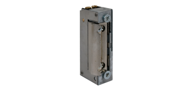 Elektrozaczep (NC) z możliwością manualnego odblokowania zamka do stanu otwartego oraz z pamięcią do podtrzymania stanu odryglowania do momentu otwarcia drzwi po podaniu impulsu otwierającego. Do zdalnego przewodowego otwierania drzwi, furtek, klap, mebli. Posiada możliwość manualnego odblokowania. Może być stosowany w profilach stalowych, aluminiowych, drewnianych oraz PCV zarówno wewnętrznych jak i zewnętrznych z możliwością montażu do drzwi prawych i lewych oraz w pozycji pionowej jak i poziomej. Regulacja zaczepu w zakresie 4mm ułatwia montaż i zapewnia precyzyjne dopasowanie elektrozaczepu do zamka klamkowego.