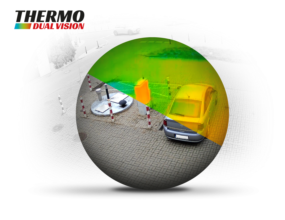 Thermo Dual Vision to funkcja dostępna w kamerach dualnych. Umożliwia nałożenie obrazu termowizyjnego na obraz wizyjny przez co znacznie poprawia szczegółowość nagrywanego obrazu.