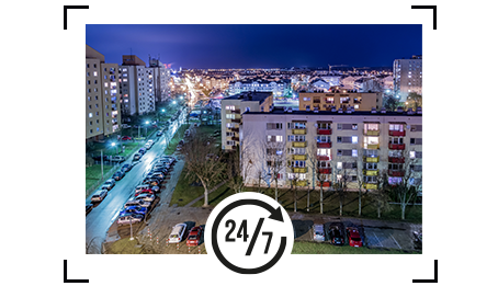 Kamera dzięki wbudowanemu oświetlaczowi światła białego rejestruje obraz w kolorze nawet w całkowitej ciemności – bez przechodzenia w tryb czarno-biały. Kolorowy obraz przekazuje znacznie więcej szczegółów, łatwiej rozróżnić elementy takie jak ubrania, pojazdy, oznaczenia czy otoczenie, co pomaga szybciej zidentyfikować sytuacje i ocenić zagrożenie. Dzięki kolorom łatwiej odczytać, co znajduje się na pierwszym planie, a co w tle, jakie są kształty i tekstury obiektów oraz jak one ze sobą współgrają w przestrzeni.